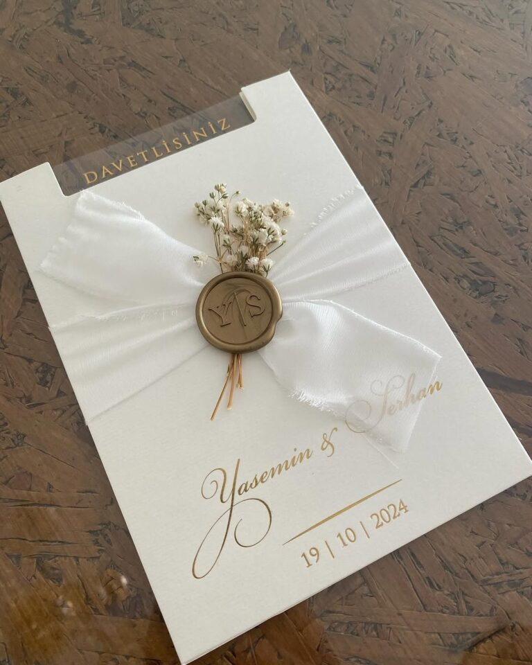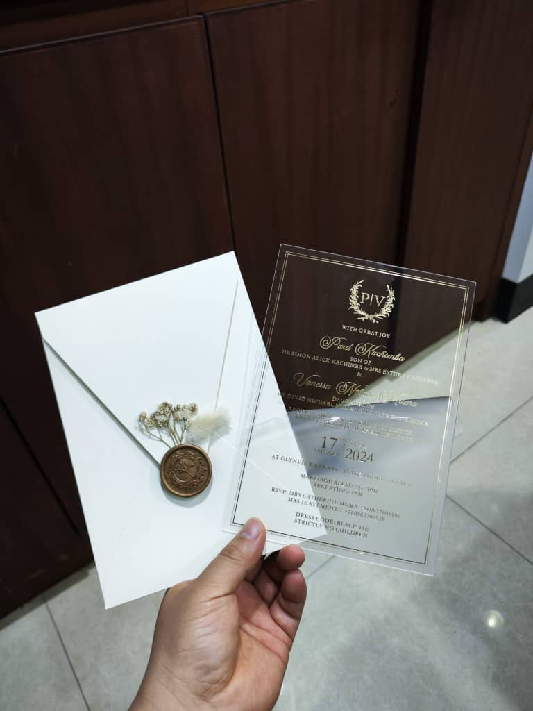 . Velvet Wedding Cards with acrylic and customized wax stamp